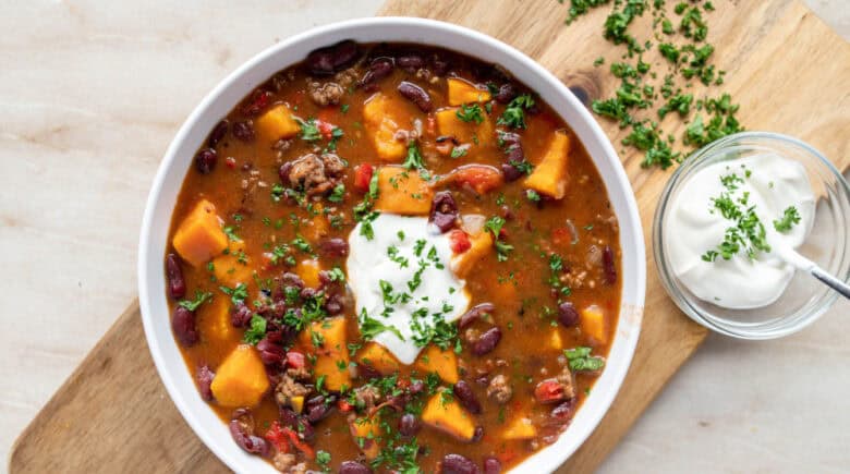- Chickpea Chili: Canned beans + canned tomato + onion + spice pack + chopped squash.